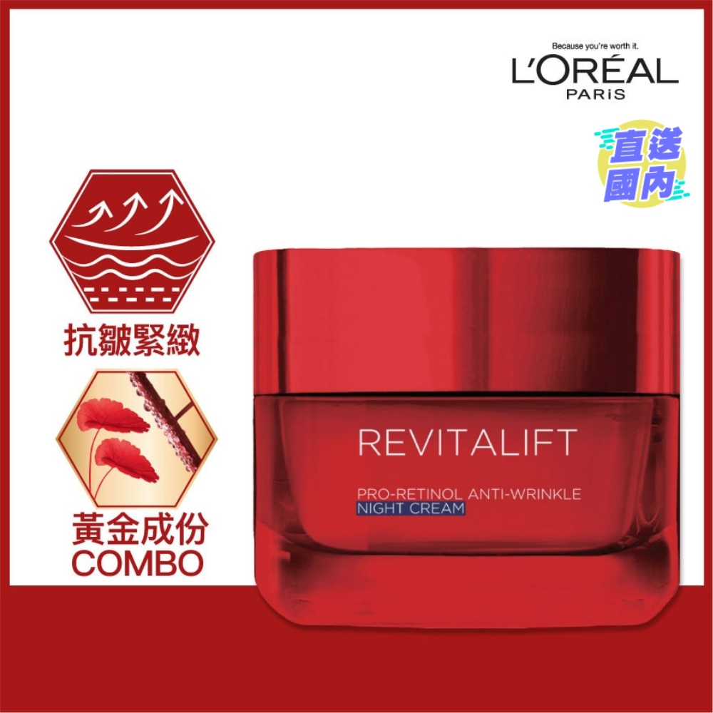 活力緊緻修護晚霜(抗皺緊緻)於晚間對抗額頭、臉龐及頸部皺紋,重整肌膚密度及彈性。蘊含PRO-RETINOL(維他命原A),刺激肌膚細胞更新,有效強化肌膚表皮層組織#,撫平皺紋, 抗皺緊緻。 配合 CENTELLA ASIATICA(積雪草) 及 DERMALIFTᵀᴹ TECHNOLOGY(肌層提升科技),改善肌膚細胞密度及彈性,幫助肌膚由內而外盈潤飽滿,回復緊緻。