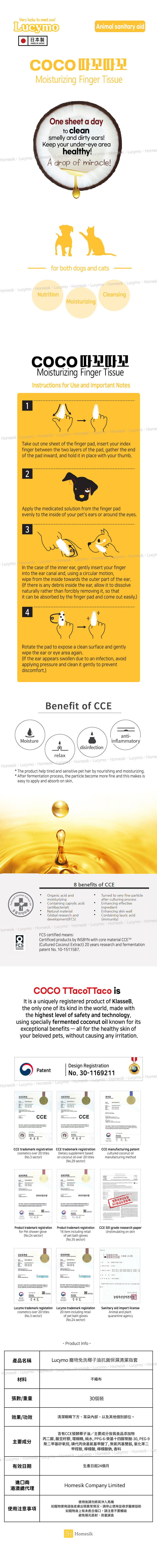2. 一滴之奇蹟︰天然椰子油與發酵技術的結合,採用FWC專利發酵製造技術,使產品含有CCE椰子萃取精油,粒子細小,其營養可於寵物皮膚及毛髮迅速自然吸收,保濕滋養之同時,有助強化皮膚屏障並舒緩刺激與敏感。椰子油亦含有月桂酸,為毛孩提供免疫防護,另外辛酸成份可有效抗菌