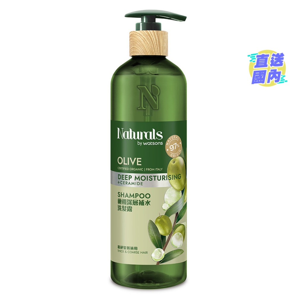 用途:清潔頭髮 使用方法:將適量NATURALS BY WATSONS橄欖深層補水洗髮露塗於濕髮上,搓揉起泡後從頭皮起按摩至髮梢,以溫水洗淨即可。