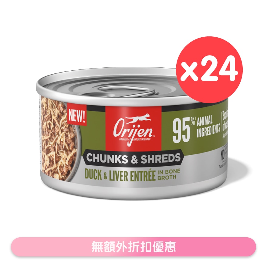ORIJEN™ Chunks & Shreds 採用新鮮動物性原料製成,搭配豐厚肉塊與鮮嫩雞肉絲,全面滋養您的愛貓,讓每一口都充滿天然美味與營養。
