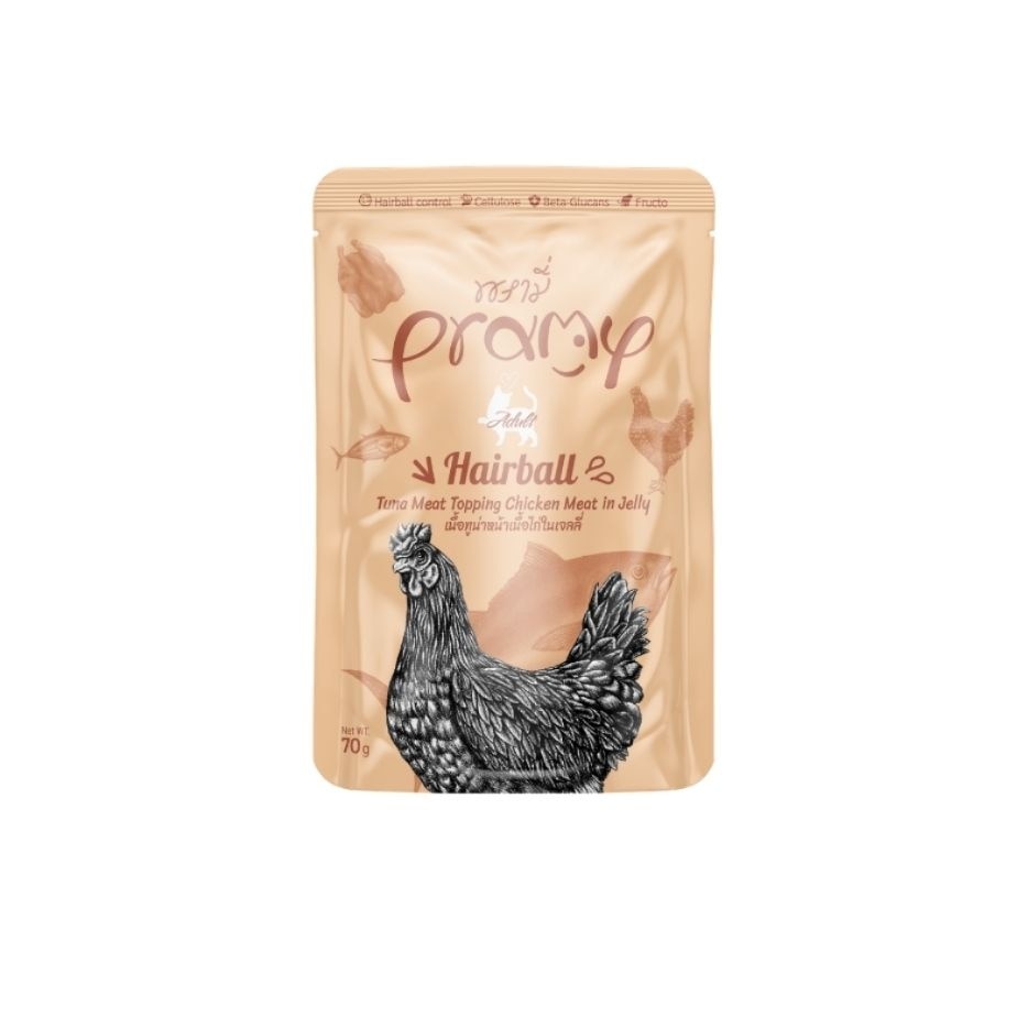 吞拿魚、雞肉、天然香料、改性木薯澱粉、果凍粉、牛磺酸、維生素 E、左旋肉鹼、低聚果糖 (FOS)、酵母萃取物、月見草油