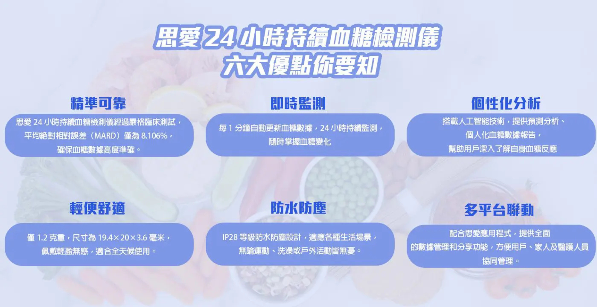 實現每1分鐘自動檢查血糖。它不僅讓您隨時掌握血糖變化,更提供獨特的預測分析、個人化血糖數據報告,助您精準管理健康。
