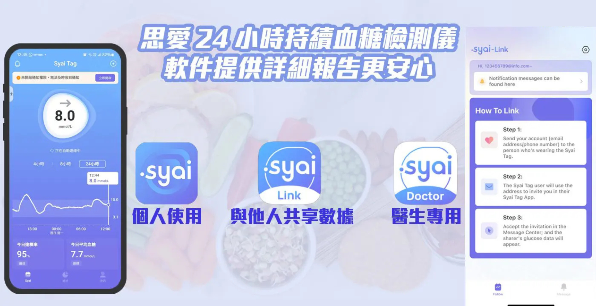 多平台聯動:配合思愛應用程式(SYAI TAG APP、SYAI LINK APP、SYAI DOCTOR APP),提供全面的數據管理和分享功能,方便用戶、家人及醫護人員協同管理。